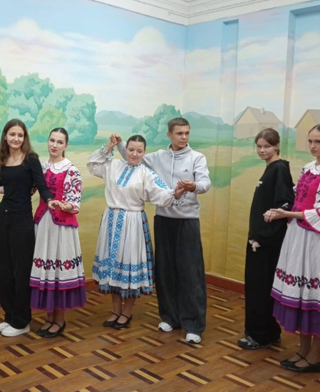 А в это время на базе ГУО «Средняя школа №9 г. Пинска» кипела работа. Преподаватели специальности «Хореографическое искусство (народный танец)» провели выездной мастер-класс под названием «В поисках призвания». Они продемонстрировали красоту и мощь танца, вовлекая школьников в магию хореографии и показывая, что танец – это не только искусство, но и призвание.
