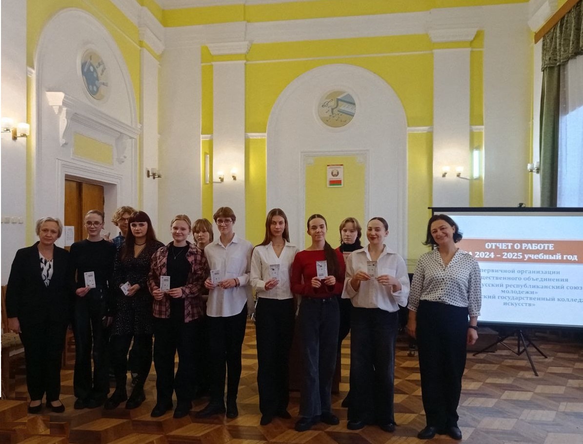 11 декабря 2025 года пошло отчетное собрание первичной организации общественного объединения «Белорусский республиканский союз молодежи» учреждения образования «Пинский государственный колледж искусств». На мероприятии выступила секретарь Борейко М.А., которая рассказала о направлениях государственной молодежной политики в Республике Беларусь, деятельности первичной организации за год. Заместитель директора по основной деятельности (воспитательной) Криштопчик Т.Н. уделила внимание направлениям работы в колледже по поддержке молодежных инициатив, вручила новым членам ПО ОО «БРСМ» смарт-билеты.