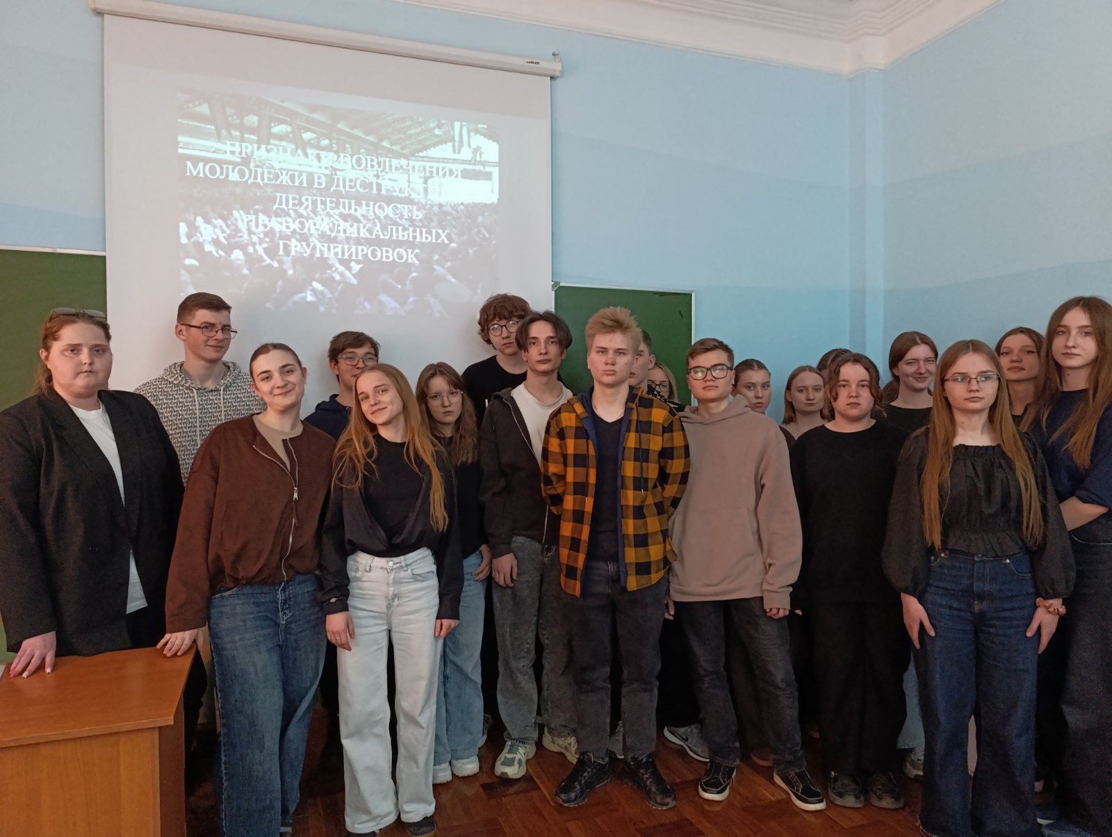 2 апреля 2026 года в колледже состоялся открытый диалог с учащимися на тему: "Экстремизм: граница между мнением и преступлением". Спикером выступила второй секретарь Пинского ГК ОО "БРСМ" Виктория Назарова.