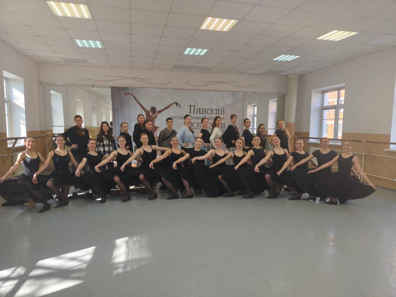 04 апреля УО «Пинский государственный колледж искусств» посетили участники танцевального коллектива «Подсолнухи» объединения по интересам ГУО «Центр творчества детей и молодежи» Пинского района (руководитель Хмарук А. Ю.). Учащиеся колледжа показали фрагменты уроков по предметам «Народный танец» (преподаватели Мармузевич Н.А., Кулишевич Т.И.), «Классический танец» (преподаватель Масибут О. В.), «Бальный танец» (преподаватель Наварич А. В.), «Сценическая речь» (преподаватель Голишевич Е. В.). Участники танцевального коллектива пообщались с учащимися и преподавателями, получили консультации по требованиям для поступающих, посетили музей колледжа.
